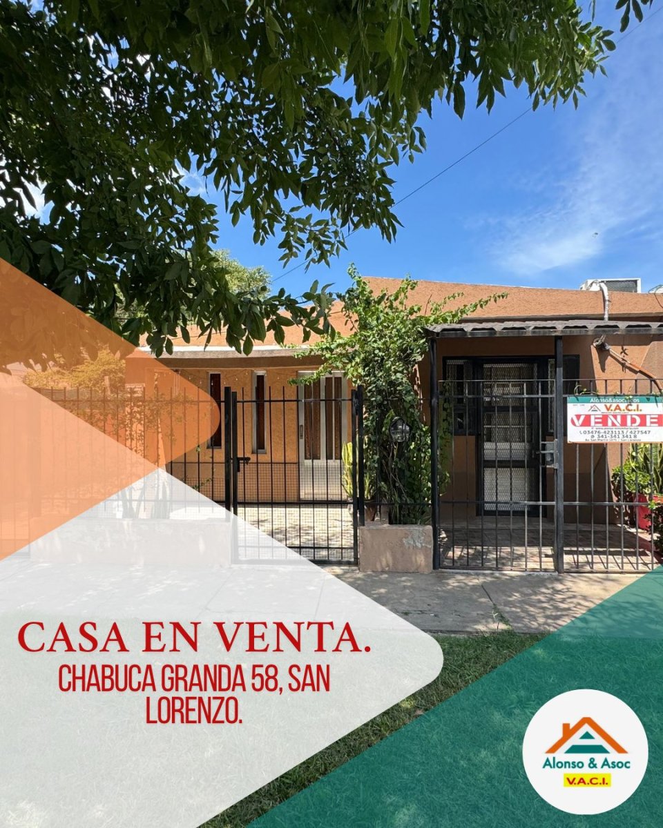 CASA EN VENTA🏡 📍Chabuca Granda 58, Barrio Bouchard, San Lorenzo. Muy buena ubicación. 2 dormitorios Cocina • comedor • baño completo Cochera • galería • parrillero. ACEPTA PERMUTA.